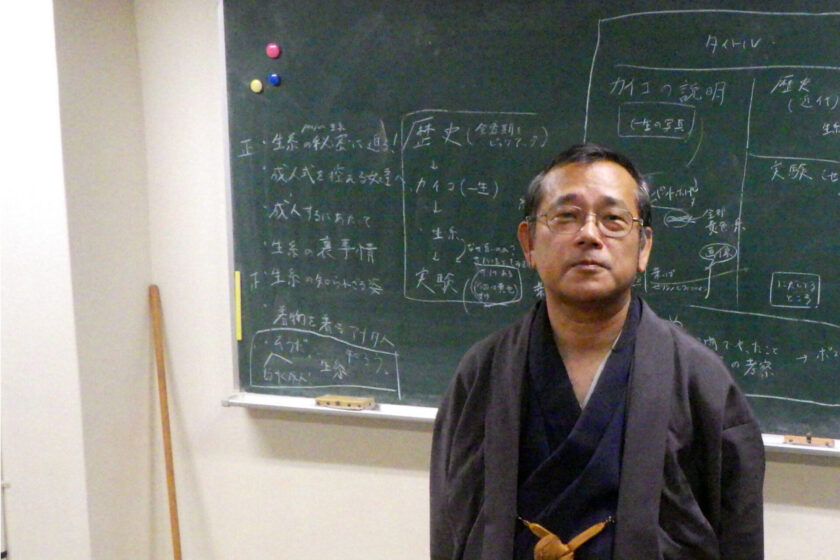 蚕糸業が盛んな頃は蚕糸教育にも力が注がれており,多くの農学部に養蚕学研究室があり,養蚕・製糸を主とした繊維学部が東京農工大学,信州大学,京都工芸繊維大学に置かれていた。養蚕学科があり,製糸学科があり,蚕糸業に関するあらゆる授業科目があった。ところが30年ほど前に研究室の名前から“蚕”の文字が消え,授業科目も無くなってしまっている。現在,研究室に”蚕“の文字があるのは私の居る”蚕学研究室“のみ,授業科目では農工大の私の担当する”蚕糸学“と信州大の塩見教授の”蚕糸・昆虫バイオテクノロジー“の2つのみである。私が教えている”蚕糸学“はそれこそ蚕糸業全般を網羅している。私は蚕種学(カイコの卵の研究と製造)が専門だが,蚕の繭から生糸ができて,生糸から反物(和服)ができる蚕糸業の全行程を教えている。幅が広すぎて大変であるが,1科目(15回)なのですべて概論である。農家が作ったものが製品として着物になることを学ぶわけなので,折角なので着物を着て講義している。着て講義してみると,確かにいろいろな事が分かる。兎に角不便である。講義前に着物に着替えるのだが,時間がかかる(10分くらいかな)。帯を結ぶのが下手なので講義中に緩んでくる(グチャグチャな結び目は羽織で隠している)。