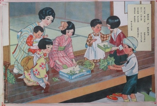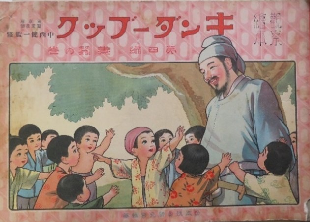 觀察繪本キンダーブックは子供向け絵本として1927年11月から第一輯第一編から始まり,1941年9月まで毎月発刊されました。内容はさまざまでした。その後第二次世界大戦が激しくなると改称され「ミクニノコドモ」になりました。私が持っている「觀察繪本キンダーブック第一輯第四編 養蠶の巻」は,昭和3年7月に発行されています。監修は東京府蠶業技師・中西健一です。内容は蚕の基本知識,蚕の飼育と上蔟(じょうぞく),御所の養蚕,絹製品,製糸,織り,上杉鷹山の事績,桑と蚕の病気と害虫,生糸の輸出を描いています。全体として非常に良い構成・出来栄えだと思います。また,巻末には各ページに掲載された絵の詳細な説明が書かれています。小学生以下の子ども達には難しい文章です。きっと大人が読んで理解し,子ども達に説明するためのものだと思います。