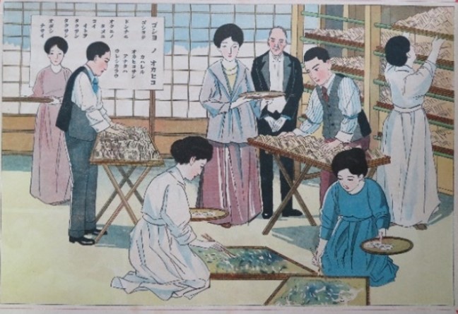 私の趣味は養蚕に関わる書籍等の収集です。とても珍しい書籍や興味深い書籍をピックアップして「珍寶蠶書」という本を出版しました。今回はその中から「勸察繪本キンダーブック第一輯第四編 養蠶の巻」をご紹介します。