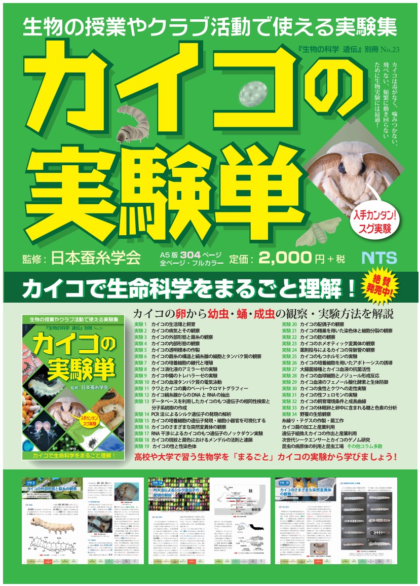 グッズ・教材紹介! ダミー記事です。 書籍を紹介! 大研究 カイコ図鑑 ・出版社 : 国土社 (2014/7/1) ・発売日 : 2014/7/1 ・言語 : 日本語 ・大型本 : 79ページ 「珍寳蠶書」 髙濱 昌利(著)・出版社:ケイエスティープロダクション;初版 (2023/7/26)・発売日:2023/7/26・言語:日本語・大型本:132ページ・ISBN-10:490 カイコの科学 「カイコの実験単」の紹介にあるように,出版社巡りをしている最中に朝倉書店さんから「カイコの実験に関する書籍の企画は難しいけれどシルクに関する書籍ならいけます」とお話しいただきました。感謝です。 カイコの実験単 カイコの実験単―カイコで生命科学をまるごと理解!(『生物の科学 遺伝』別冊No.23)・出版社;エヌ・ティー・エス (2019/3/22)・発売日;2019/3/22・言語;日本語 もっと見る 浮世絵を紹介! 初めて手に入れた浮世絵 藤井博教授が1990年の学術講演会で歌麿の浮世絵を示していたが、歌麿とか広重の浮世絵は国宝級で、浮世絵なぞ自分には手の届かないものだと思っていた。20年くらい前、Yahooのオークションで「蚕 喜多川歌麿の浮世絵と飛ぶ蚕蛾 九州大学の藤井博教授は1990年の日本蚕糸学会第60回学術講演会において演題「カイコは飛ぶ能力を失ってしまったか?」と、ちょっと変わった口頭発表されている。だいたい学術講演会では最新の研究をな もっと見る 美術・工芸品を紹介! 「農民美術」について 蚕都上田にある農民美術をご存じですか?農民美術は約100年前に現在の長野県上田市から始まった農民による伝統工芸運動です。代表作として,こっぱ人形や鳩の砂糖壺,上田獅子(写真1)があります。 もっと見る