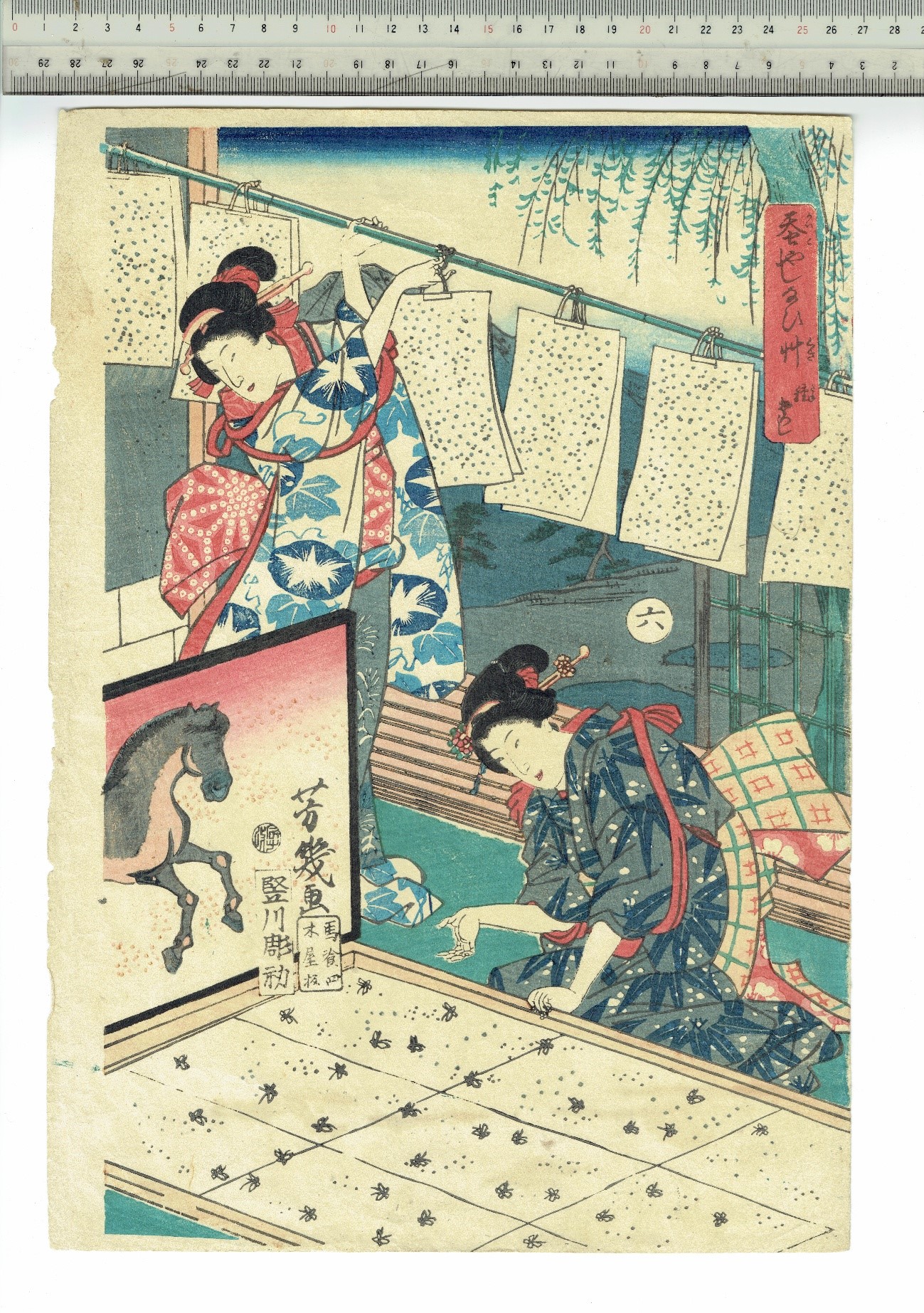 また、空や衝立のグラデーションを版画でどうやって付けたのだろうか?手が込んでいる。